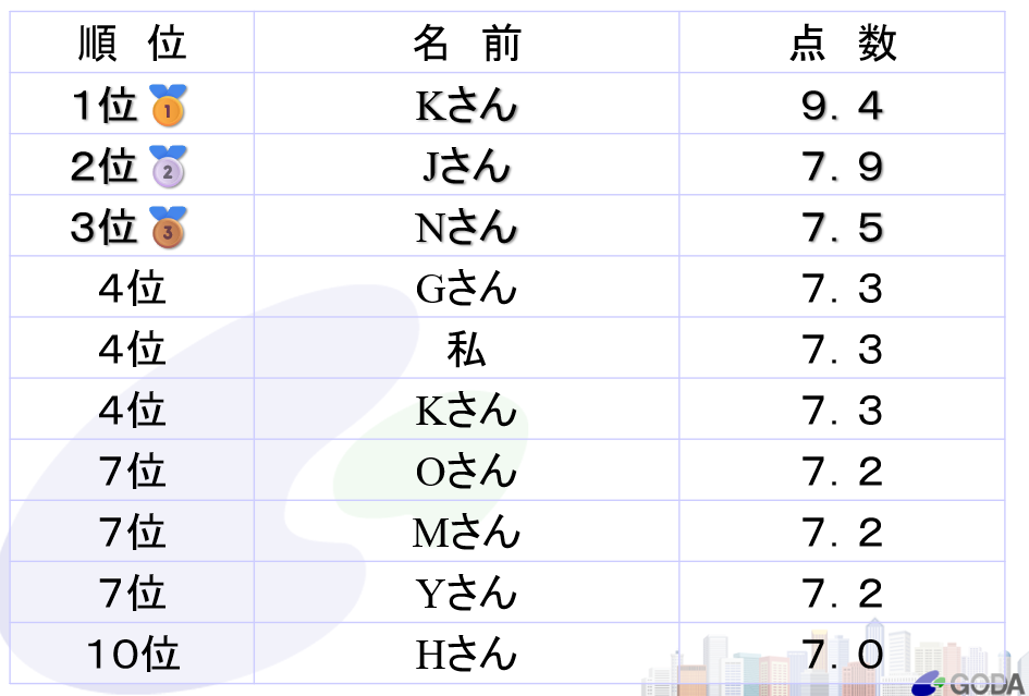 私個人の結果は・・・・・